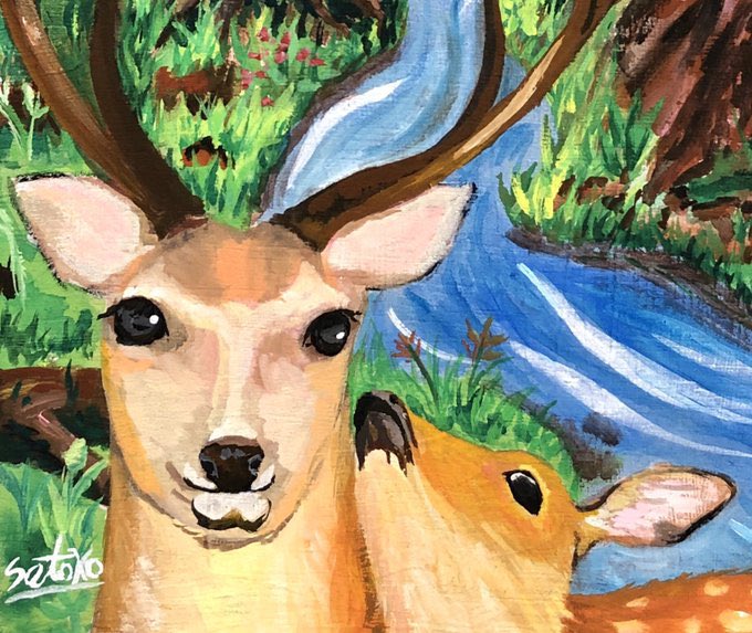 豊かな自然イラスト 森と湖と動物たち Real Illustration Samples